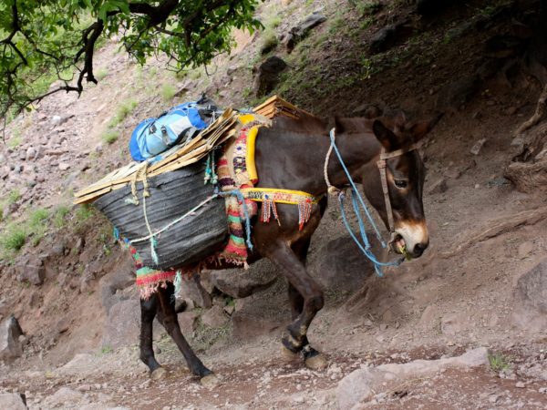 Shada the mule works in Marrakech, Morocco. Life there is extremely tough for working animals. At an age when she should retire, daily life for Shada has only grown harder. Day in, day out, she carries heavy loads of construction materials in oppressive 40-degree heat for her owner, Mustafa, and his family.