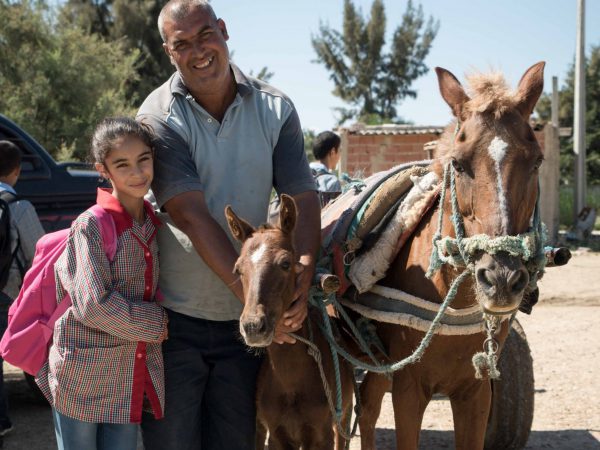 Lotfi and his 10-year-old daughter Maram got to the location long before the mobile clinic arrived. They knew how valuable SPANA’s treatment had been to friends and neighbours in the village. This time Lotfi knew that his horse, Buna, just needed a check-up.