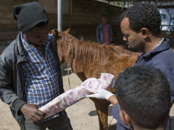 The vet learnt from Bekelle that two of his horses had died the previous year from African horse sickness, a highly infectious disease spread by infected insects. This had been a serious economic blow to Bekelle and his family and Bekelle was barely able to afford to support his children, let alone buy a new halter for Negus. To prevent Negus from succumbing to the same fate as the other horses, our vets decided to vaccinate him against African horse sickness as well and told Bekelle how to identify the early warning symptoms of the disease.