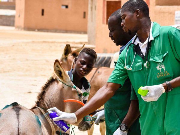 The vets arrived later that morning, and Dr Wane set about inspecting Iasfar’s harness wounds, noticing that one wound had started to become infected. As Yehmi’s intrigued children looked on, Dr Wane administered anti-inflammatory and antibiotic injections to reduce the swelling and fight the infection.