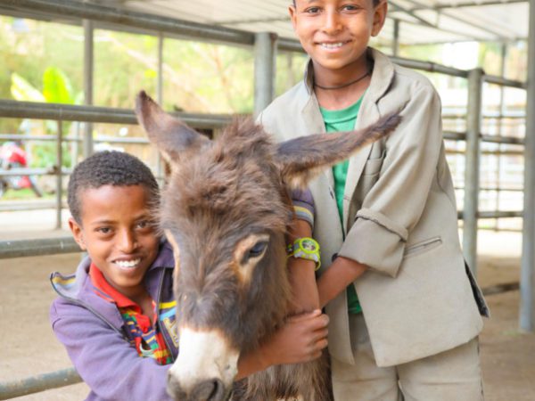 Six-month-old donkey foal Kofi is well loved by his two young owners Thomas, 10 and Aser, eight. Both boys took on responsibility for the young animal when the donkey’s mother died of malnutrition from a parasitic infection. The little boys love Kofi and bottle feed the orphan foal daily under the watchful eye of their father, Semih who already attends SPANA Ethiopia’s community training sessions. Over the years, Semih has cared for many donkeys which he uses to help him transport goods around the town of Bishoftu, Ethiopia.