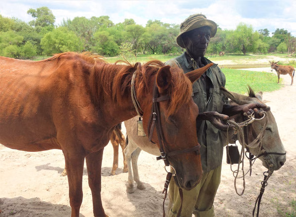 After assessing the pair, SPANA Botswana’s Country Director, Pippa, dewormed and fed them both. She advised Mr Moabi on the best grazing available to the animals, even in drought. Pippa also replaced the simple rope bridles that Mr Moabi was using with much more comfortable nylon bridles and bits.
