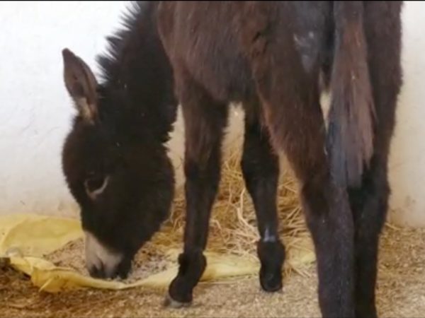 At the clinic, our vets examined DJ carefully and found that his hooves were overgrown. As well as being painful and uncomfortable for donkeys like DJ, overgrown hooves can also lead to health issues, such as abnormal or additional strain on tendons, ligaments, muscles and joints further up the leg. The team set about trimming DJ’s hooves with special farriery tools to correct the problem. Each hoof was expertly checked and trimmed to ensure they were all well balanced and in a good condition.