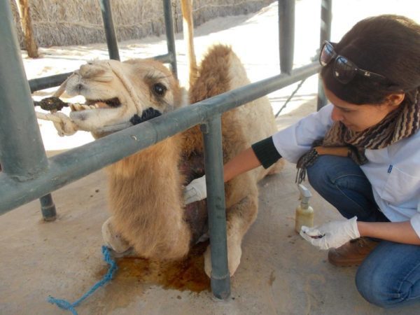The team got to work straight away treating the young camel by draining the abscess and applying a local disinfectant to the wound. They advised Ahmed that he should keep cleaning the wound and using the disinfectant until his neck had healed, which would take around a month.