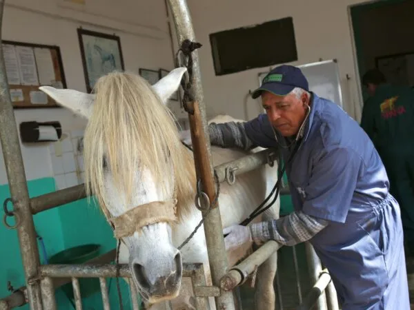 Our vets gave Markab a full physical examination and asked Fouad lots of questions about his horse’s diet. They diagnosed Markab with colic – excruciating abdominal pain caused by a blockage in his large intestines.
